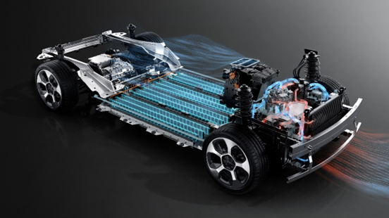 以热泵空调为基础,可适应环境温度零下30度到零上60度,通过双层十一通道跨域集成的热管理枢纽,将乘员舱、电驱动舱和电池舱热场深度耦合,智能分配热量,能效提升50%,低温续航提升25%。
